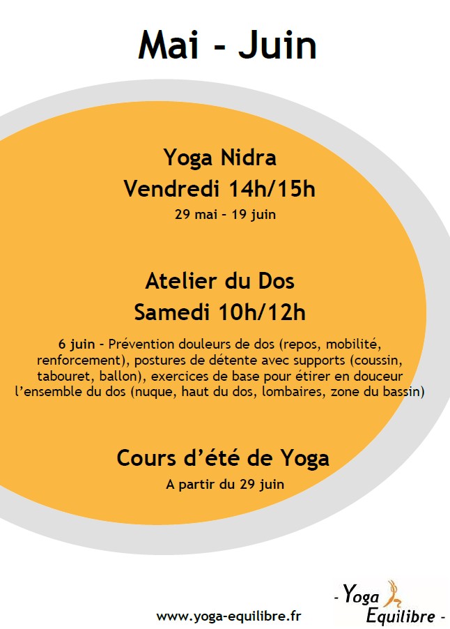 - Cours de Yoga hebdomadaires, que vous pouvez intégrer à tout moment de l'année quelque soit votre niveau (y compris débutant)